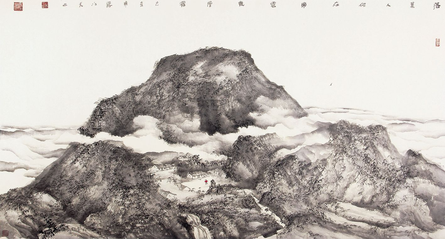江天 《落叶人何在 寒云路几层》 纸本水墨 100cm×170cm 2019年