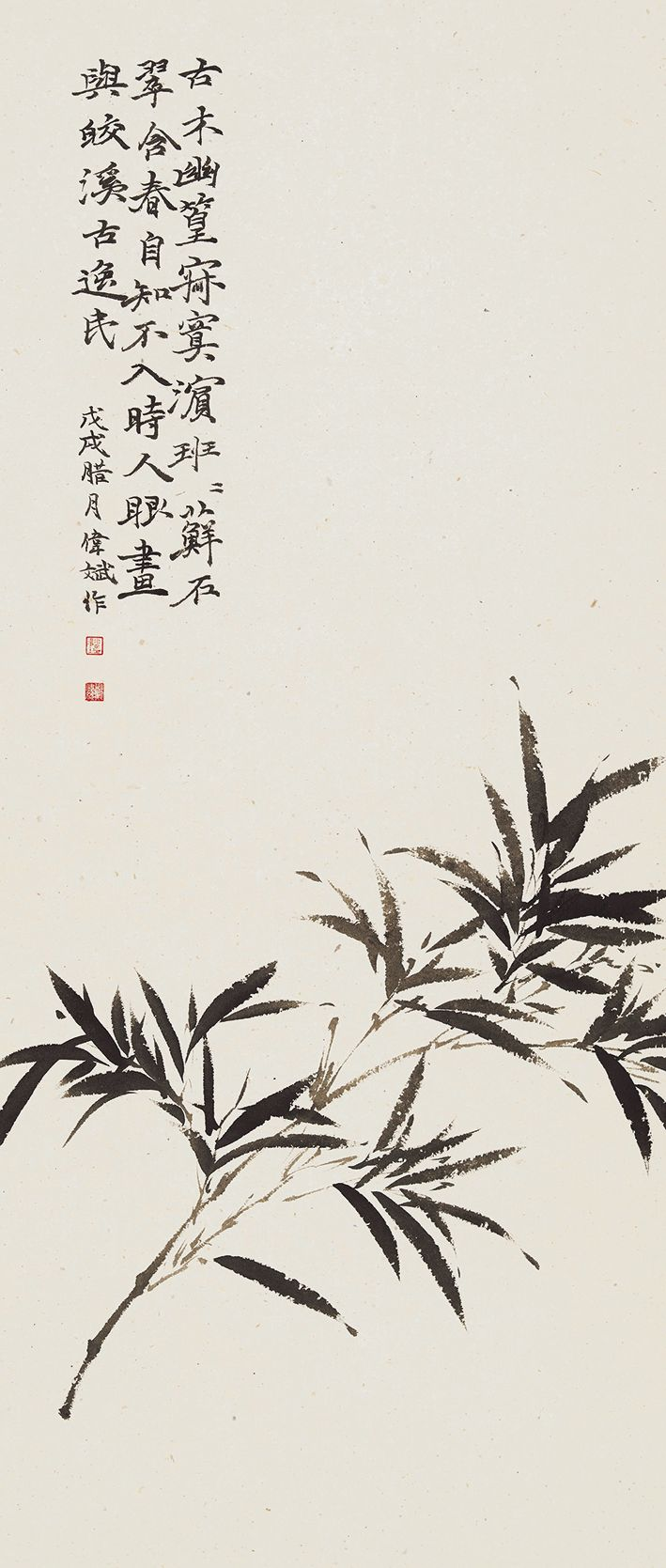 郑伟斌 《墨竹》 纸本水墨 94.5cm×40cm 2018年