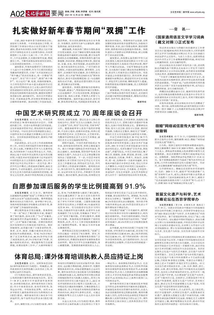 (A01-1) 欢迎订阅2022年文化艺术报