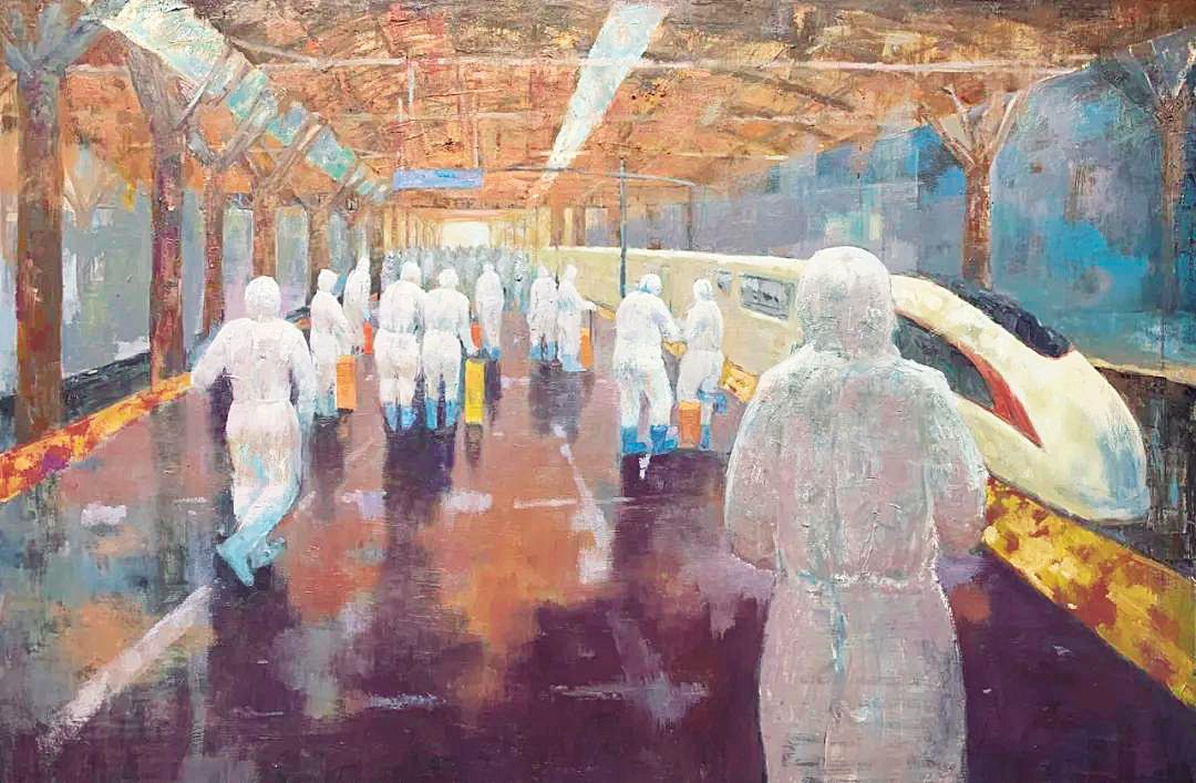 潘蕾 《背影——致敬最美逆行者》 油画