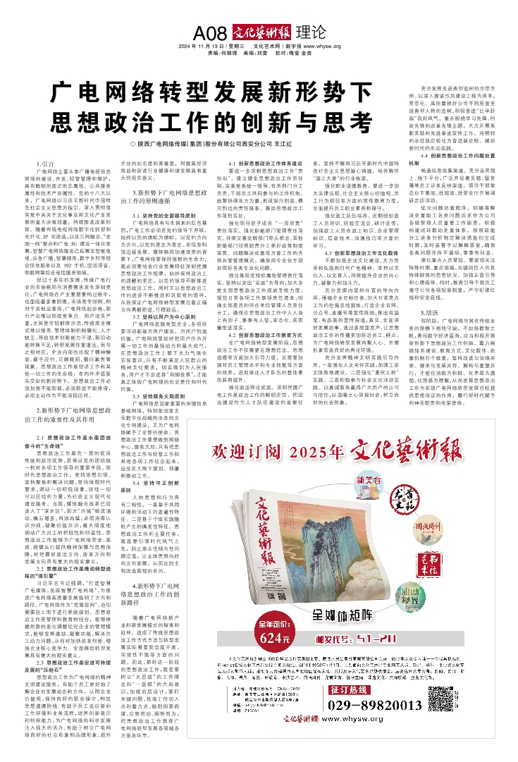 (A01-1) 欢迎订阅2025年文化艺术报