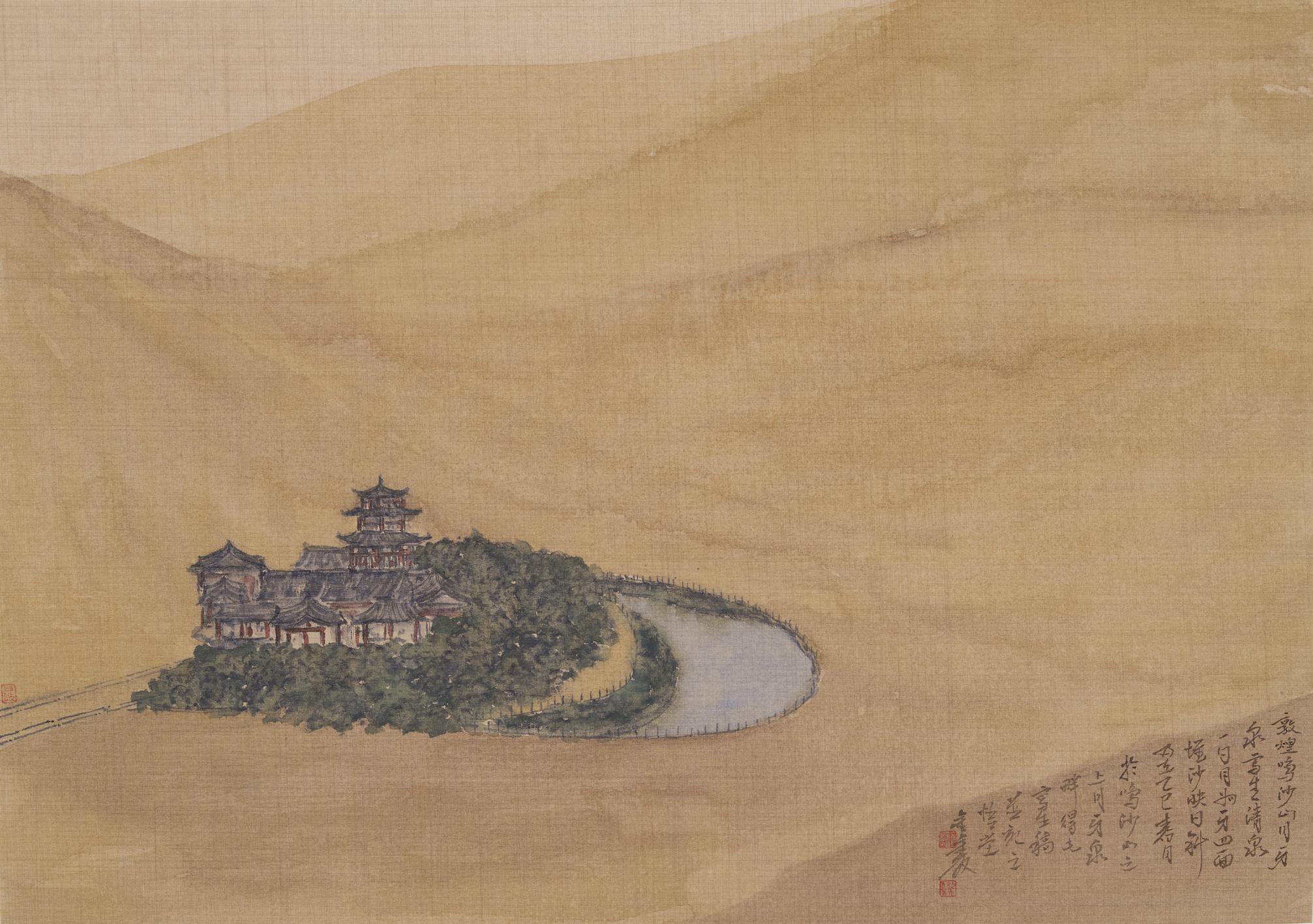金鑫 《甘肃·敦煌月牙泉写生》 绢本设色 40cm×50cm 2025年