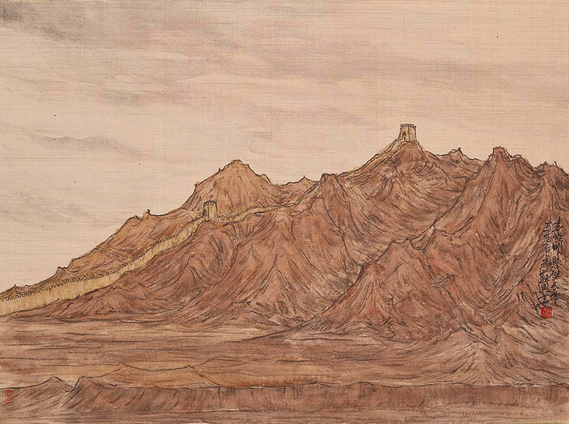 苏恩华 《甘肃·嘉峪关悬臂长城》 绢本设色 30cm×40cm 2025年