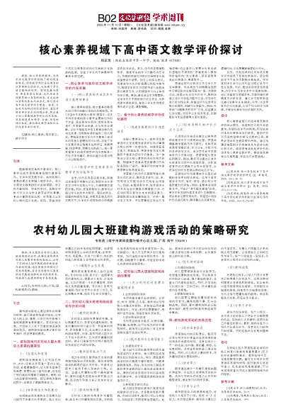 [2]魏蓉深.核心素养视域下高中语文教学评价探讨 [J]. 高考, 2023,(22):114-116.