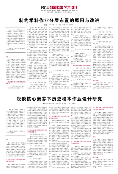 在当今教育领域,核心素养已成为教育教学改革的核心目标。历史学科作为一门承载着丰富文化内涵和教育价值的学科,对于学生的思维发展、价值观塑造具有不可替代的作用。校本作业设计作为历史教学的重要环节,如何在核心素养的引领下进行优化,以更好地服务于学生的学习和成长,是教育工作者亟待解决的问题。