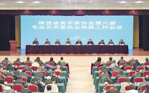 陕西省文学艺术界联合会党组成员、专职副主席蔺雨,陕西省美术家协会主席、西安美院院长朱尽晖,陕西省美术家协会党组书记、秘书长吴江峰,陕西省美术家协会党组成员、副秘书长何虎林等领导出席会议,会议由吴江峰主持,相关艺委会成员代表 150余人参加会议。