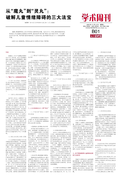 摘要:情绪障碍是三至六岁学前儿童的常见问题。本文以小C为例,聚焦其强烈的分离焦虑、安全感缺失及强迫行为障碍,通过运用“混天绫”轻抚心灵以建立信任、“火尖枪”直击行为干预、“乾坤圈”稳筑和谐环境三大有效手段,逐步缓解并改善了小C的情绪障碍问题。