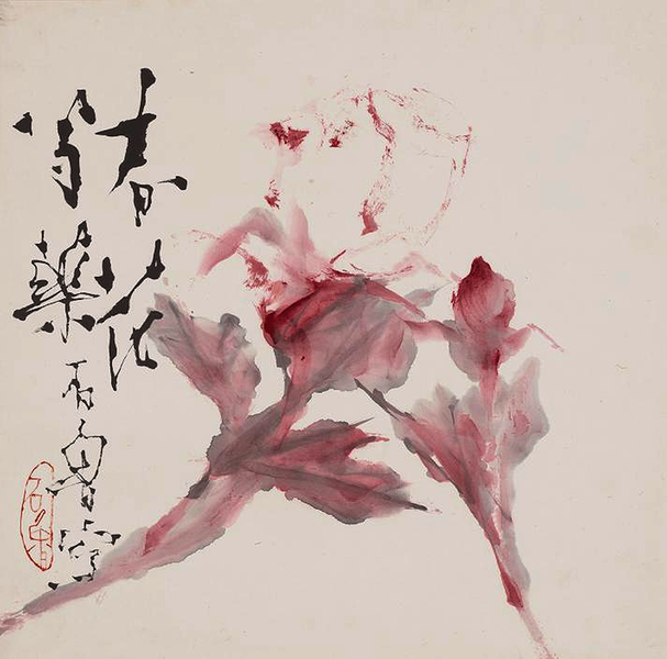 石鲁 《春花芍药》 纸本设色 34.2cm×34.8cm 1976年