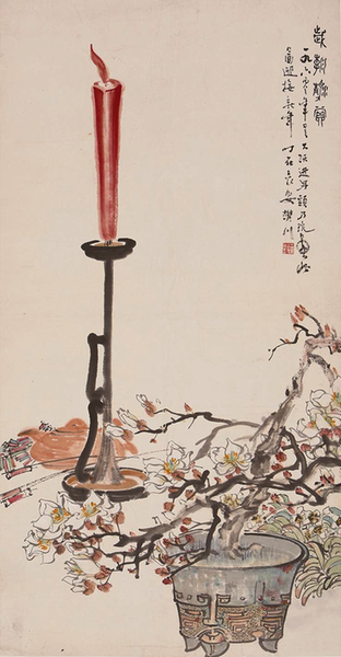 郑乃珖 《岁朝清赏》 纸本设色 131.5cm×67.5cm 1960年