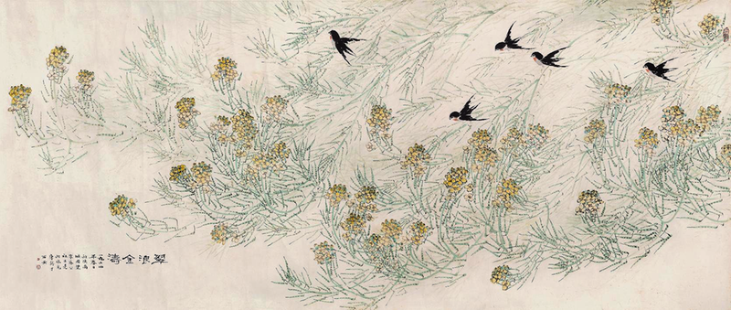康师尧 《翠浪金涛》纸本设色 96cm×236cm 1964年