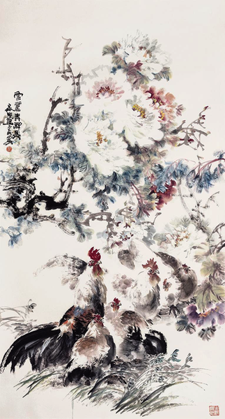 刘保申 《富贵吉祥》 纸本设色 180cm×97cm 2005年