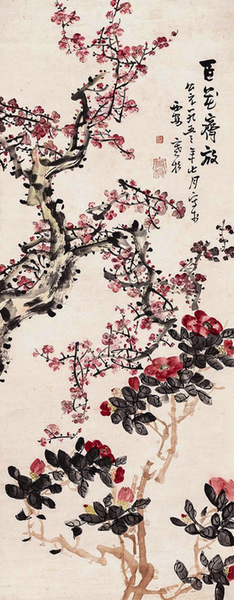 张寒杉 《百花齐放》纸本设色 103cm×42cm 1953年