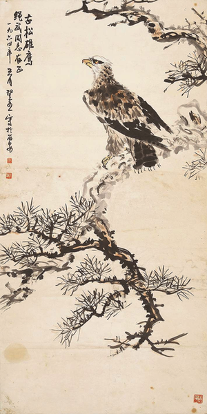田登五 《古松雄鹰图》 纸本设色 133.6cm×67cm 1964年