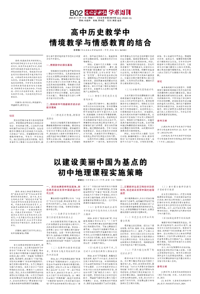 [2]邹春风.高中历史教学中情境教学与情感教育的结合探析[J].都市家教(下半月),2022(9):3.