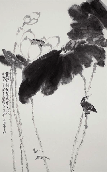 张耕 《晨曦湖滨一声鸣》 纸本水墨 70cm×45.7cm 2024年