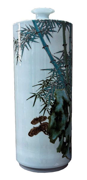 田博文 《竹海听涛声 》粉彩瓷瓶 2024年