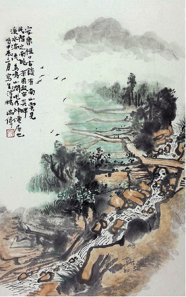 康瑞伟 《恒口古镇写生》 纸本设色 35cm×23cm 2024年