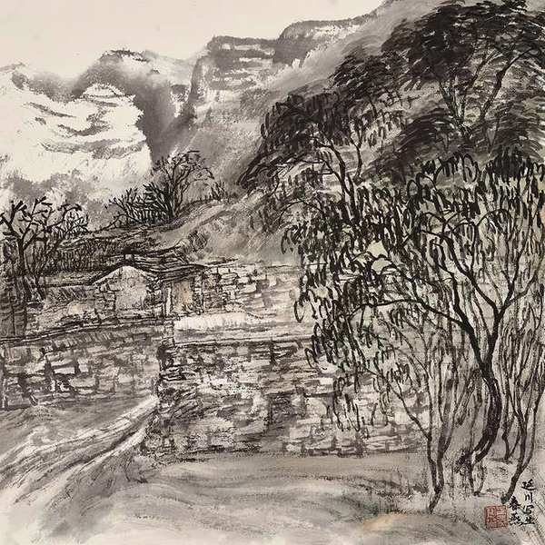 李春艳 《刘家村写生》 纸本水墨40cm×40cm 2024年