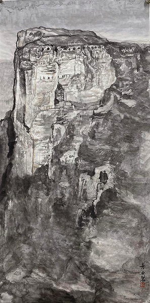李春艳 《太华危岩》 纸本设色138cm×69cm 2025年