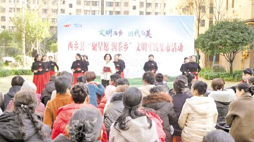 文明实践集市活动开幕现场 图源:西乡县融媒 文化艺术报讯 (全媒体记者 唐伟)12月5日,汉中市西乡县“文明西乡·因我而美”暨“聚星愿·润茶乡”文明实践集市在城北街道东关世纪新城院内开集,周边居民踊跃参与,共赴这场家门口的文明之约。