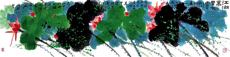 2014年,先生家里需要一张画,他忽然点名让我画。我想想画了一幅《何者为荷》。四尺对开,栽种一纸荷塘。