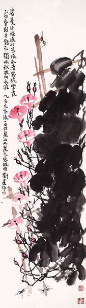 刘星 《牵牛秋韵》 纸本设色 180cm×49cm 2025年