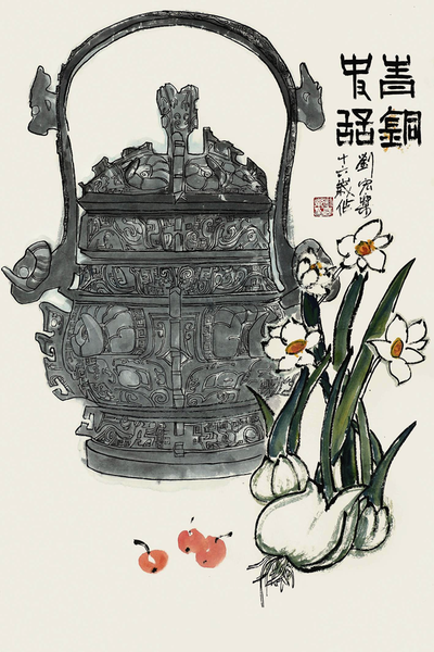在长期磨砺中,刘宏乐逐渐形成独有的创作态度。他既肯下苦功锤炼技法,从师法规矩到探索没骨与小写意的融合;亦怀有真诚的文化情怀,视绘画为衔接古今的桥梁,使其作品在表现青铜纹饰等题材时,兼具形制之美与文脉传承的思考。