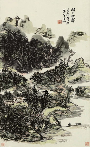 黄宾虹 《湖山初霁图》 纸本设色 71.5cm×34cm 1952年 浙江省博物馆藏