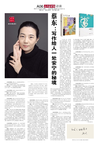 蔡东:文学有一种安定内心的力量,它映照现实、影响社会,也抚慰着一个个具体的人。正因为忙碌,节奏快,碎片太多,读长篇小说才更有意义。