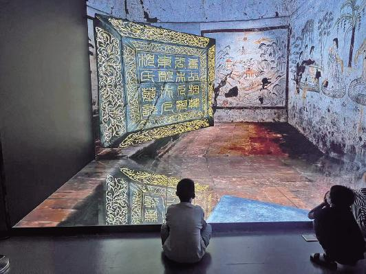 陕西考古博物馆出土壁画数字展厅运用数字影像技术,展示韩休墓壁画 梁飞燕/摄