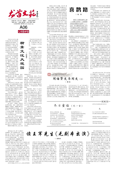 我把石头房门口的路,命名为:喜鹊路。记得第一次跟随年轻的镇长进入这条小路,就看见了喜鹊,凡是喜鹊出现之地,就会看见屋顶和茂密的树木,安居的俗世。我的生活需要来自通向尘世之路的某一条小路,我对小路的弯曲和笔直深处的事物,充满了好奇和期待。在我开始阅读纸本书时,就会看见著书的那些孤独和伟大的作家和思想家,都会经常在一条充满白昼流星的小路上行走。我自己身边似乎总有一条陪伴我生活的小路,无论置身何处,哪怕客居一座旅馆和客栈,我都会在第一时间去留意周围的那条小路。是的,其实在我们的周围,总会有一条小路,有时候也会寻找到许多小路相互交替出现在眼前,但总会选择你想走进去的那条小路。