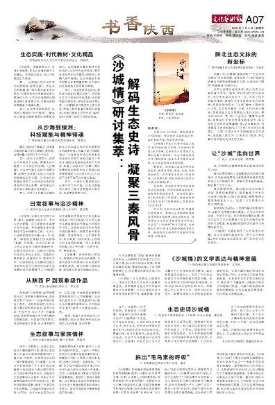 作为一个榆林人,也算见证过家乡天翻地覆的巨变,读到记录驼城儿女奋斗历程和奉献精神的长篇小说《沙城情》,自然会引发非同一般的情感共鸣。《沙城情》以70万字长卷呈现了半个多世纪以来榆林人民治理毛乌素沙漠和建设三北防护林的艰辛历史,以鲜明的生态叙事和人文情怀,写出了人与自然和谐共存的传奇故事,以一种岁月留情的笔触,唱响了大漠深处的生命赞歌。小说具有很强的纪实性,书写这一关乎人的生死存亡的震撼世界的伟大创举,赋予了小说重大题材的价值。小说的一大特点是将生态叙事与家族叙事相结合,浓郁的“沙城”之情是小说的主基调,也是小说的另一显著特色。“沙城”在小说中既是地理环境,同时也可以视为参与小说的一个意象。另外,小说围绕治沙事业主线和家族故事副线,塑造出了系列人物群像,以人物的人生奋斗历程来呈现陕北人身上那种祖辈传承的顽强生存意志、面对苦难的抗争精神和豪迈乐观性格。