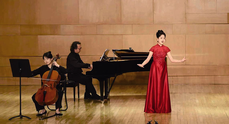 耿梓雯(右一)在音乐会上独唱 赵雨明/摄 文化艺术报讯(全媒体记者 赵雨明)近日,一场特殊的独唱音乐会在西安音乐学院艺术中心A厅举行。主角是12岁的翠华路小学六年级学生耿梓雯。令人惊叹的是,整场音乐会她全程未使用麦克风,并以流利的意大利语完整演唱多首古典艺术歌曲,展现出超越年龄的声乐功底与艺术表现力。