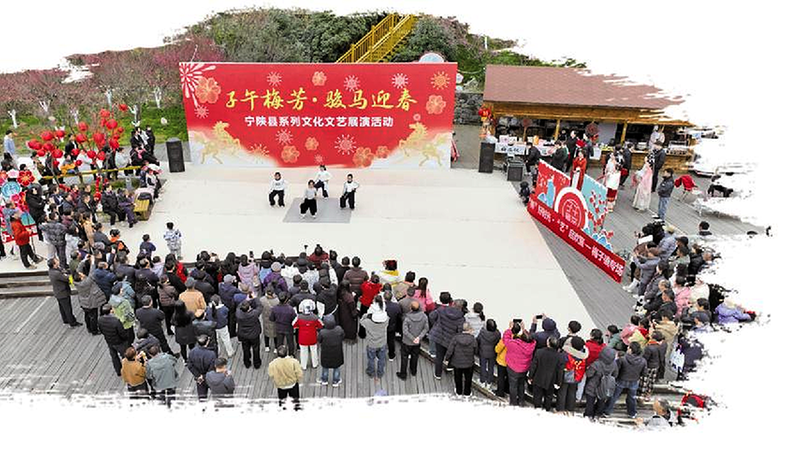 游客观看子午梅苑景区大舞台的文艺展演 图源:安康市宁陕县融媒体中心 文化艺术报讯(全媒体记者 唐伟 通讯员 但华峰)为深入挖掘地域文化资源,丰富群众精神文化生活,助力文旅融合发展,安康市宁陕县于1月17日至4月4日,在子午梅苑景区大舞台举办“子午梅芳·骏马迎春”系列文化文艺展演活动。活动由中共宁陕县委宣传部、县文联、县文旅广电局联合主办,各镇及多个县级部门共同承办,旨在借助子午梅苑开园契机,持续提升“秦岭之心·绿都宁陕”的知名度与吸引力。
