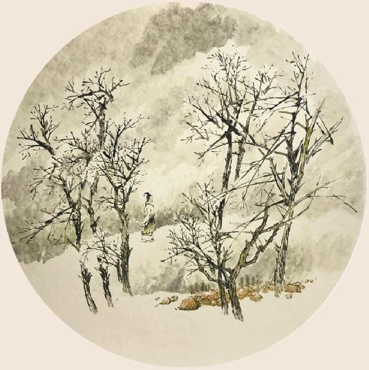 刘丹龙 《寒林寻吟》 纸本设色 50cm×50cm 2025年