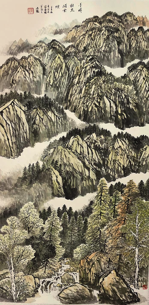 刘丹龙 《千峰林立峭云烟》 纸本设色 138cm×69cm 2019年