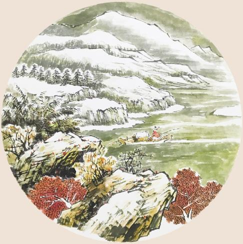 刘丹龙 《独钓寒江》 纸本设色 50cm×50cm 2024年