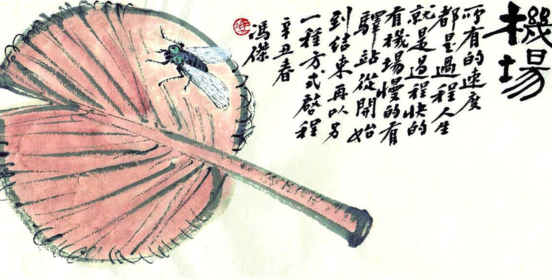 细算一下,从辰龙到乙未,我至今一共画过六把扇子,台湾地区一把,大陆两把(小荷那一年看猴子掉在动物园草地上一把后又补一把),瑞士一把,马来西亚一把,另一把秘而不宣,鱼一样从草坪游走了,去向不明,但我肯定它尚在世间。总之,扇子之渊源说不清楚但也一一算是都有了交代。
