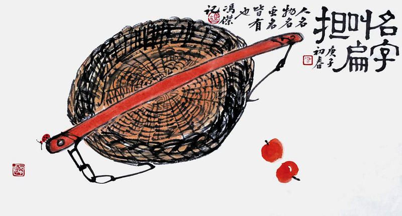 一天河南诗人李正品看到我画的那一幅《扁担图》,纠正说,严格讲这不是“扁担”而是“钩担”。扁担长,两端无钩,主要挑箩筐使用,钩担短,两端有铁环少许,末端置有铁钩,主要是挑水、打水。打水时还可当井绳使用。他说我画的正是钩担。李大哥有农村经验,这专业提醒立马引起我对扁担、钩担的回忆。