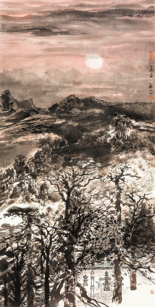 与以前不同的是,吴建军的作品一改过去的专注于画景,而着力于营造画面的意境,从而更加突出地表现了国画的特点。那种带有“薄暮烟云”的情境所显现的空灵和孤寂,不仅是对“静月净土”的偏爱和孤芳自赏,更重要的是对自身心灵境界的一种追求和刻意的传达,也是对中国画表现特点的深入理解。