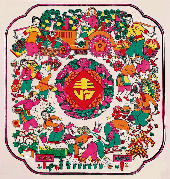 《丰收图》 木版年画 34cm×35cm 苏州桃花坞木刻年画社藏