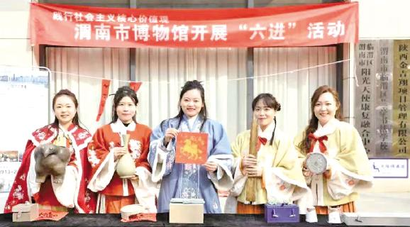 5位身着仿古服饰的讲解员展示文物复制品 图源:渭南市博物馆 文化艺术报讯(全媒体记者 高盼成 通讯员 张文婕)2月6日,由渭南市博物馆举办的“流动博物馆”活动走进渭南市临渭区三贤路社区。活动现场通过翔实的文物知识讲解、派发节日“福”字与宣传资料,以及馆方走访慰问社区群众等环节,实现了文化惠民与人文关怀的有机融合。
