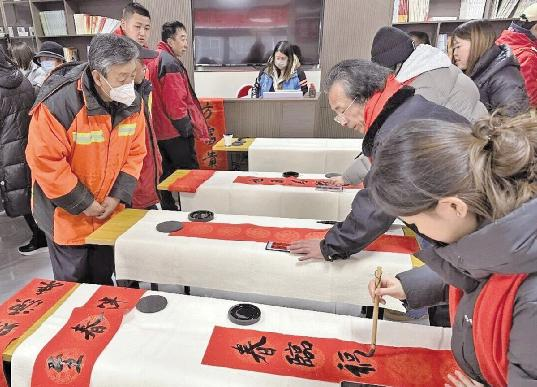 活动现场,红纸铺展,翰墨飘香。书法家们挥毫泼墨,将美好祝愿凝于笔端,一副副满载祝福的春联在行云流水间诞生;非遗传承手工艺人巧手翻飞,精美的剪纸窗花栩栩如生,传统技艺在指尖焕发时代光彩。现场还精心准备了红灯笼、中国结等“文化年货礼包”,让平日里穿梭于大街小巷的劳动者提前感受到浓浓的节日氛围。