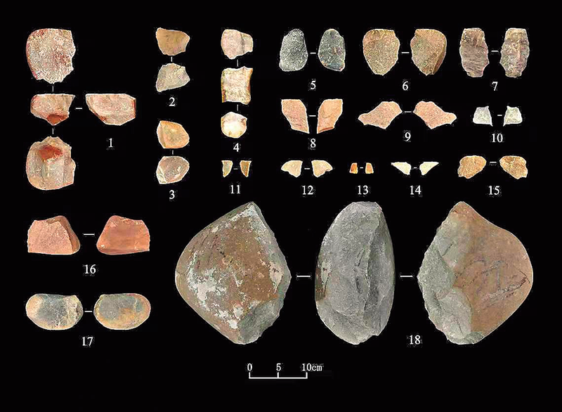 石锤 石片 石核 2月6日,记者从陕西省考古研究院了解到,考古人员在榆林市府谷县黄河沿岸新发现10处旧石器地点,共采集石制品150件。此次新发现进一步扩大了黄河中游晋陕峡谷地区旧石器时代遗存的分布范围,同时深化了对该地区石制品埋藏地层、绝对年代、技术类型等问题的认识,有助于对中国北方地区早期现代人扩散问题的研究。