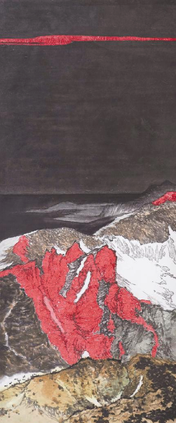 何怀雨 《长白一抹红》 纸本设色 240cm×100cm 2018年