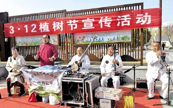 陕北说书艺人宣传治沙故事 图源:榆林市榆阳区委宣传部 文化艺术报讯(全媒体记者 刘燕郡)3月12日,在第48个中国植树节、全民义务植树运动开展45周年之际,榆林市榆阳区在世纪广场组织开展植树节主题宣传活动,以多样化形式传播绿色发展理念,凝聚全民植绿、护绿、爱绿共识,助力生态文明建设向纵深推进。