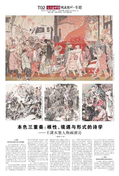 回头复综合审视当代陕西人物画代表群落:张立柱的笔下有吼自大地深处的秦腔古歌,是魂兮归来的“地籁”;邢庆仁将本土情愫点化为普世诗篇,郭全忠以悲悯情怀吟咏乡土情性,可谓“人籁”唱和。而王潇的艺术血脉,既与他们息息相通,又卓然不群而渐次自成一家。依庄子之见,悖离自然之道的人为之声(悖道人籁),尚不及大地自发之音(地籁);唯有顺应自然、由技入道的人为之声(顺道人籁),方能窥见天道(天籁)的堂奥。由此理归总比拟王潇的“本我”“自我”“真我”之“三元”,在其《本色》画册中,恰似一部波澜壮阔的三重奏。而且,三个声部并非依次独奏,而是频繁交替,竞相问答,彼此映衬,在和谐中达成“和而不同”的丰饶之境,正越来越为知己者叹赏,令同道者刮目,而生机勃然。