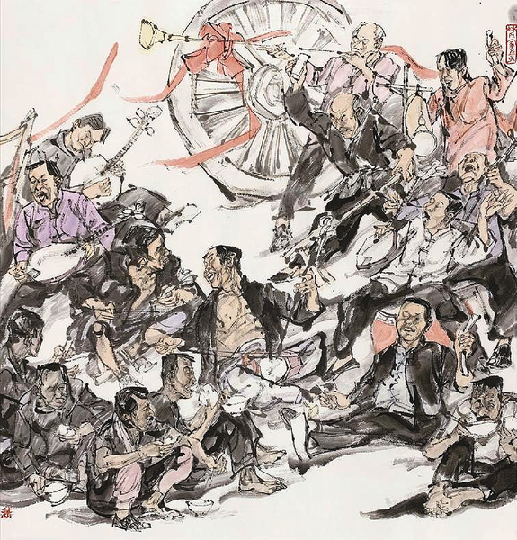 王潇 《华阴老腔》 纸本设色 55cm×50cm 2020年