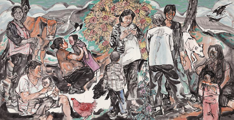 王潇 《吉祥母亲》 纸本设色 125cm×240cm 2020年