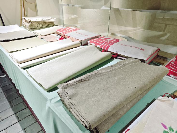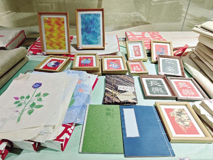 蔡侯纸博物馆里展出的“熊猫纸”“艾纸”及文创产品